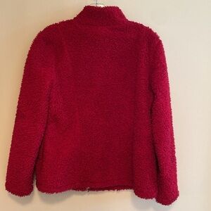 J Jill fuzzy soft boucle fleece long sleeve zip up jacket holiday red size SP