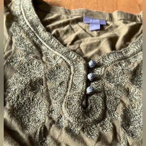 J. Jill green 3/4 length t-shirt, size Small. This top has beautiful embroidery detail around the neckline and cuffs. The top is in excellent condition.