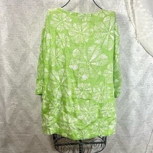 J. Jill green floral 3/4 sleeve linen tunic size S