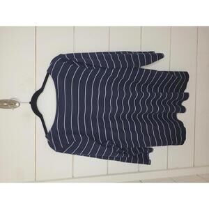 J. Jill large blue with white stripes 3/4 sleeve v neck tee shirt