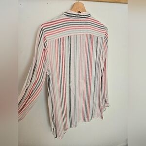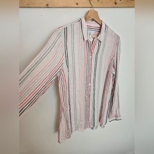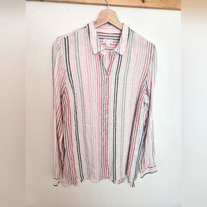 J Jill long sleeve linen pink and gray striped button down | M tall