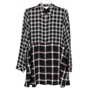 J. Jill long sleeve long length Button up plaid rayon oversize Tunic size Small