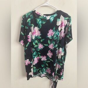 J Jill love linen T-Shirt L Floral Print Short Sleeve Asymmetrical Hem Bloomcore