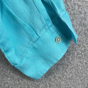 J. Jill love linen button up blouse XL turquoise teal beach travel casual resort