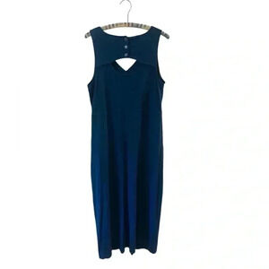 J Jill brand maxi dress in a deep blue green color keyhole button closure detail at the back and pockets! Excellent used condition