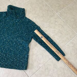 J Jill petites Speckled, confetti Pullover Cowl Turtle Neck Sweater women's size MP teal green