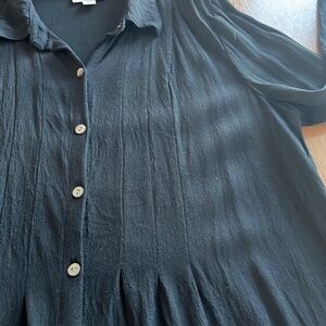 J Jill pleated front button down tunic blouse size medium collared long sleeves