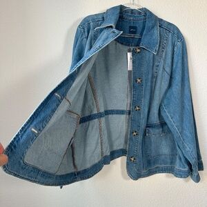 J. Jill plus size 3X lightweight denim jean jacket blue medium wash cotton new with tags