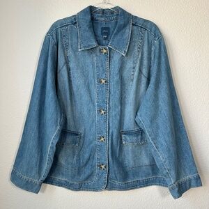 J. Jill plus size 3X lightweight denim jean jacket blue medium wash cotton NEW