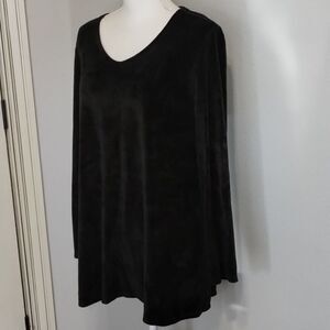 J Jill pure jill blouse top size large black velour tunic longsleeve V-neck