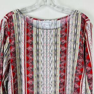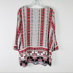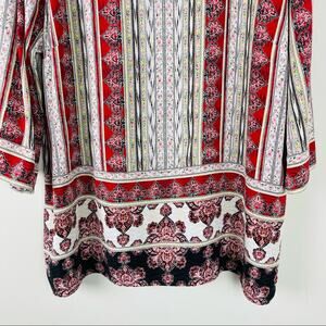 J. Jill red white boho floral lightweight 3/4 sleeve top medium