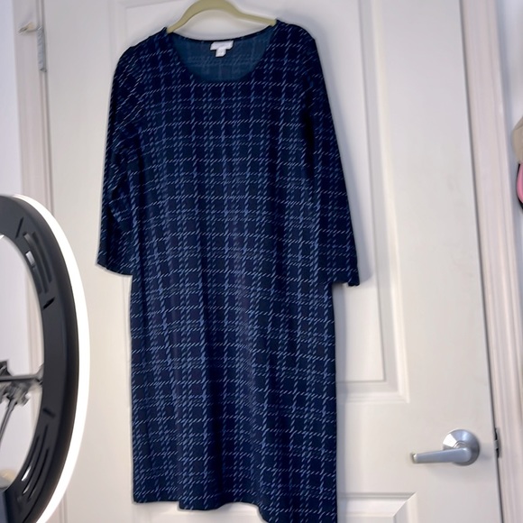 J Jill size medium, sleeves, side pockets, dark blue with light blue square design, very comfortable will also fit size 12