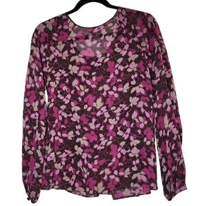 J. Jill silk blouse. Long sleeve. Brown purple floral. Size XS.