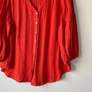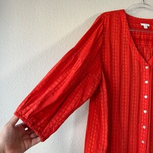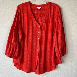 J. Jill size XL v neck button front blouse top long sleeve textured boho orange