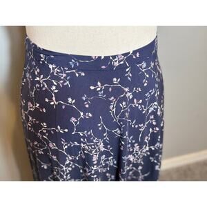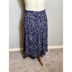 J. Jill skirt blue floral print midi length flowy elastic waist side zip Sz S