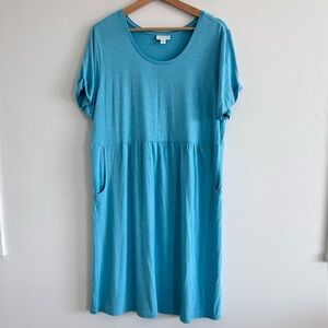 J. Jill soft stretch jersey knit turquoise blue dress with pockets size large