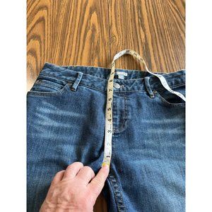 J. Jill stretch woman’s boot cut/bell bottom jean size 4P. Zips and buttons in front. Front and back pockets. Made in Hong Kong. Good pre-owned condition.