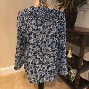Beautiful blue print sheer top by JJill Long sleeve Polyester Machine washable in excellent condition