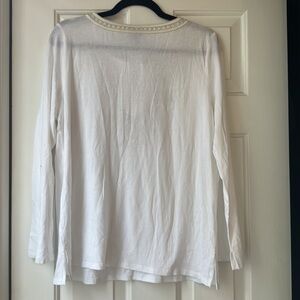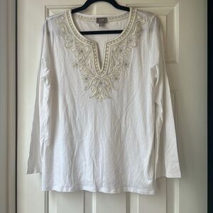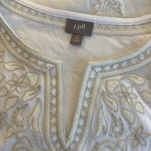 J Jill white embroidered tunic style top long sleeve cotton modal medium petite
