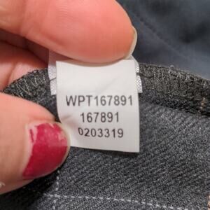 Featuring a zip fly, two slip pockets ( still stitched shut), relaxed fit and neutral gray.