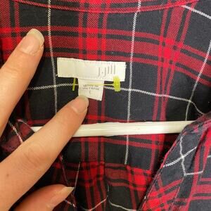 J Jill womens L red plaid long sleeve button up flsnnel drop waist fall tunic