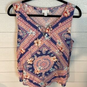 J. Jill women's sleeveless tie front summery workwear colorful blouse size M