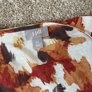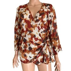 J. Jill wrap top blouse brown water color floral 3/4 sleeve silk blend SZ LG Tall