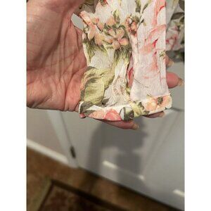 J. Jill (xs)Button Down Shirt V-Neck Pink Green Floral Rayon Gauze