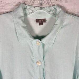 J. Jill Aqua Linen Popover Tunic Cotton Knit Lined Double Layer Sz Large