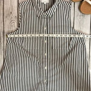J Jill Black White Striped Button Up Sleeveless Blouse