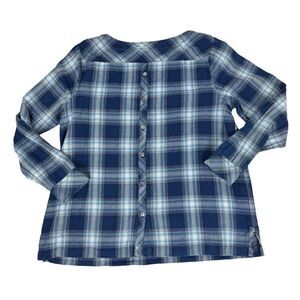J. Jill Blue Plaid Tunic Blouse Size Medium Button Back
