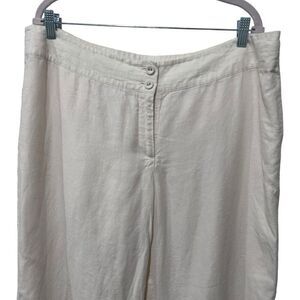J. Jill Cream Linen Button Zip Fly Wide Leg Beachy Coastal Pants Size 18 Summer