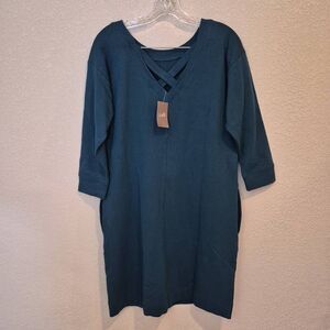 J. Jill Dress Sweatshirt Shift Criss Cross Back Size S Turquoise