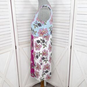 J. Jill Floral Colorblock Knit Sleeveless Shift Dress Blue Pink