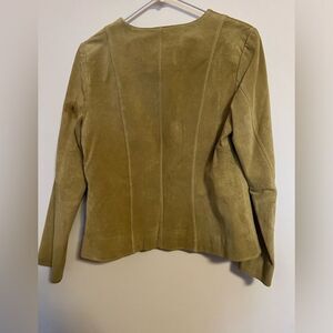 100 percent leather jacket size small. Has small area on arm that needs dry cleaned