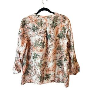 J. Jill Love Linen Palm Leaf Print Linen Blouse Sz S oversized Tropical Beach Bo