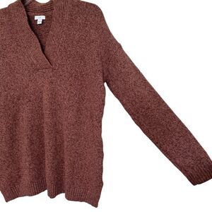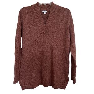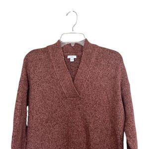 J. Jill Pink/Brown Mauve Relaxed Marled V-Neck Ribbed Trim Sweater In A Size Small !