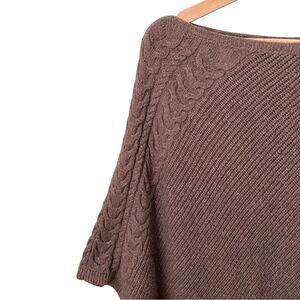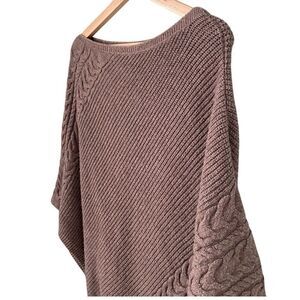J Jill Poncho Heather Mocha Cable Ribbed Knit Cape Pullover One Size