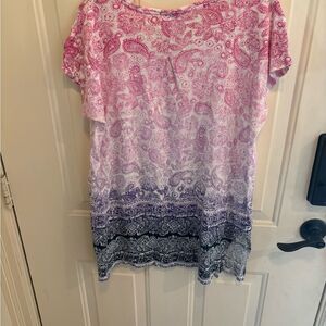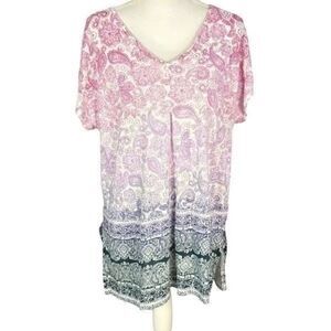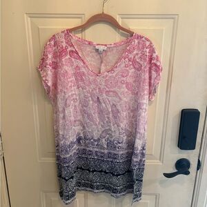 Embrace a relaxed elegance with this J. Jill tunic, showcasing a soft purple hue and delicate pleats. The cap sleeves add a touch of charm, making it a perfect choice for casual outings. Its flowing silhouette ensures comfort and style in one.