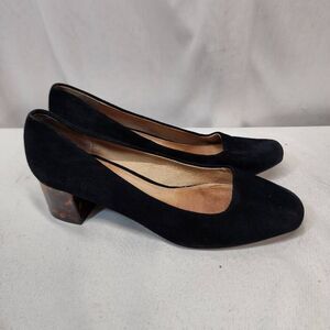 J. Jill Shoes 9 Black Suede Pump Slip On Leather Career Tortoiseshell Heel