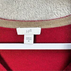 J. Jill Sweater Knit Tunic Red Cotton Blend Lightweight Long Sleeve Size M