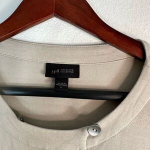 J. Jill Wearever Collection Women Tan One Button Tunic Cardigan Large Minimalist