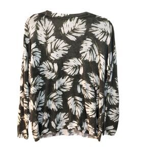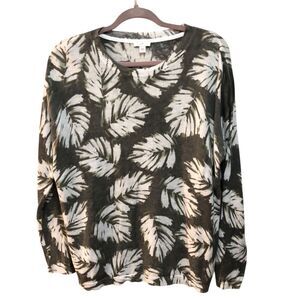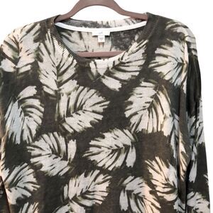 J. Jill Women’s Sweater Sz S Gray Leaf Print Linen Modal Blend Knit