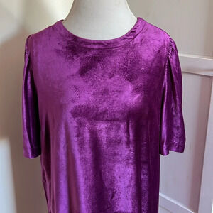New with extra button tag, J. Jill velvet special occasion dress. This brilliant purple jewel-tone dress has puff-style sleeves. Button closure at the back of the crew neck. This comfortable dress is perfect for special occasions and holiday events. Currently have a size M and L available.