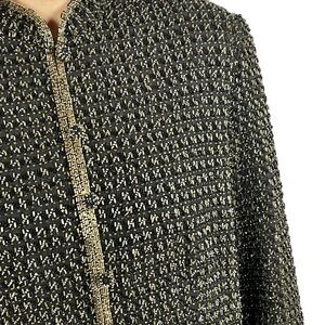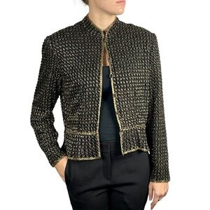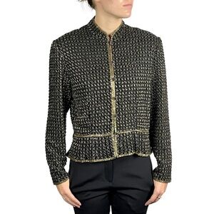 J KARA VINTAGE SILK BEAD EMBELLISHED TWEED PEPLUM BUTTON HOLIDAY EVENING JACKET
