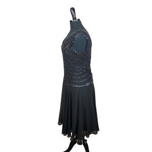 J Kara Black Beaded Midi Event Dress Flapper Drop Waist Hoco Formal 12