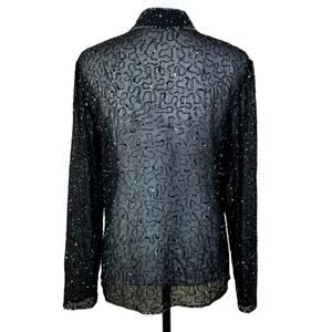 J Kara Black Beaded Sparkle Jacket M Semi Sheer Cocktail Glam Elegant Event