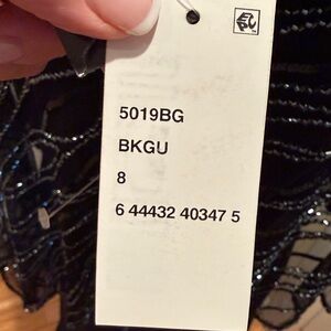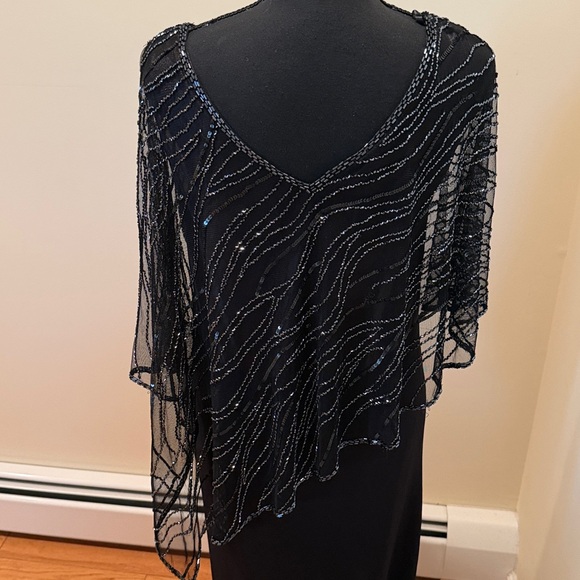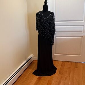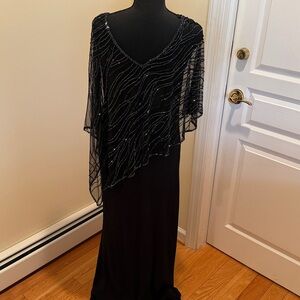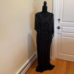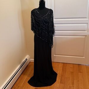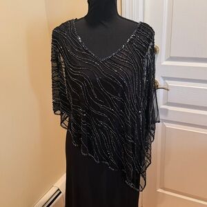 J Kara Black Evening Dress with asymmetrical beaded overlay.new, never hemmed