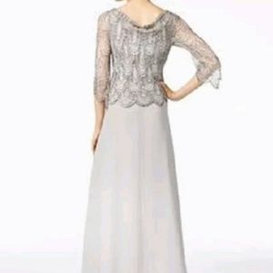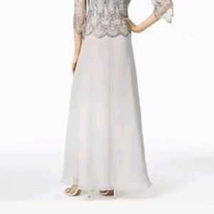 Ready to capture the spotlight at your next big event, a floaty chiffon gown in is illuminated with shimmery scalloped beading through its drapey popover bodice.