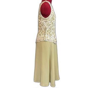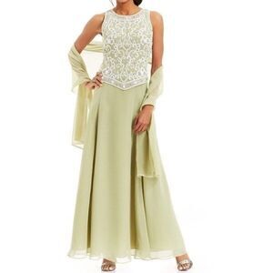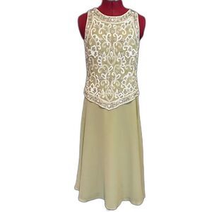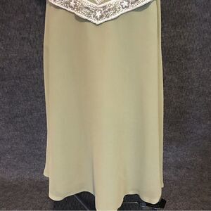 J Kara Gown Women’s Size 8 Green Long Length Beaded Bodice V-Trim Sleeveless